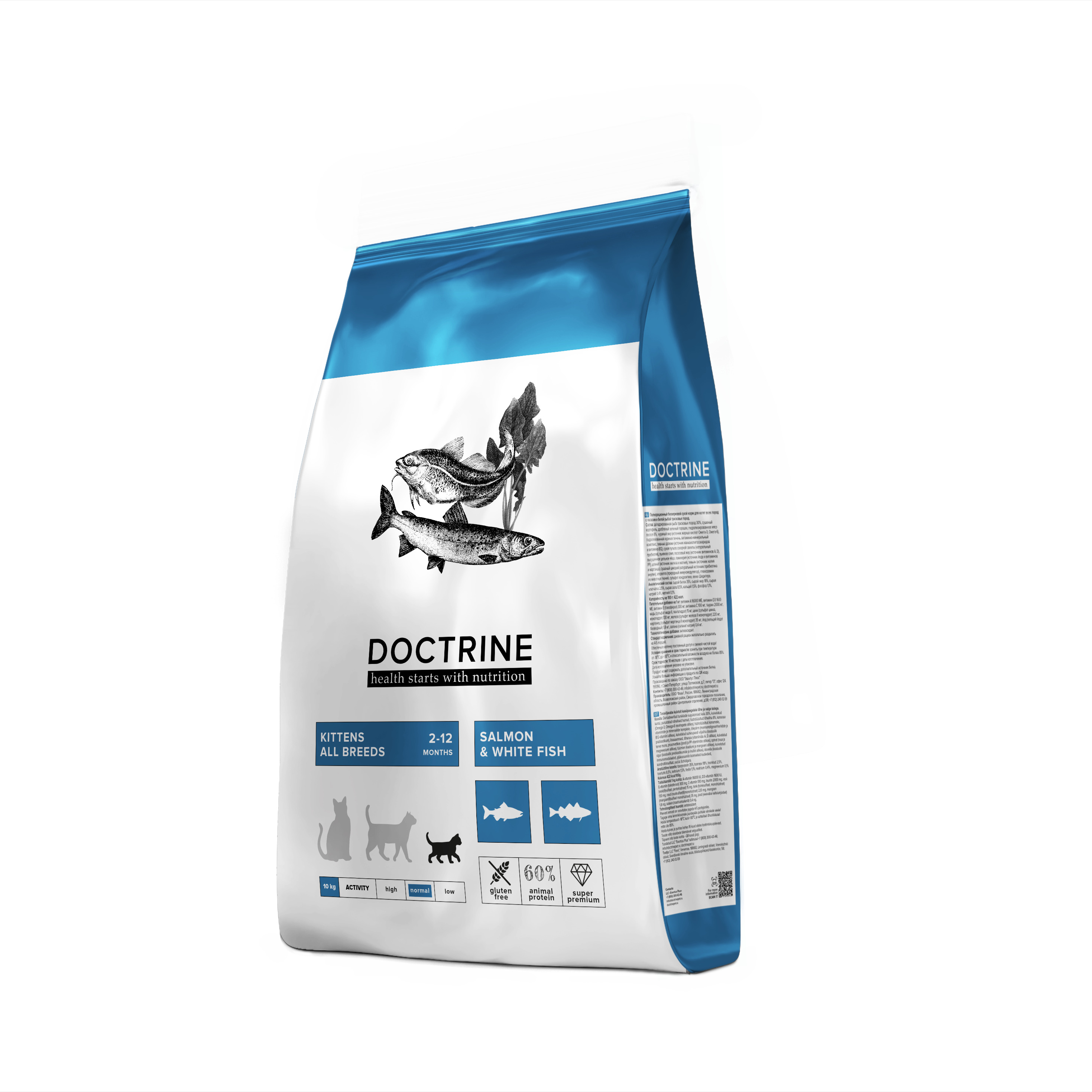 Сухой беззерновой корм DOCTRINE для котят с лососем и белой рыбой 3 кг-1 шт