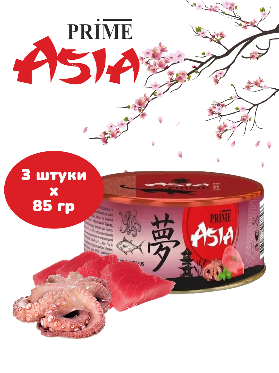 Корм для кошек влажный PRIME ASIA Тунец с осьминогом в желе, ж/б 85г, 3 шт.