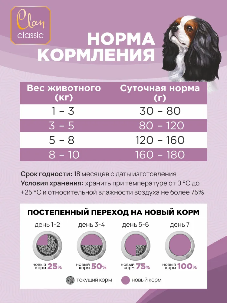 Clan Classic Hypoallergenic 23/11 — полноценный рацион. Он создан с учетом пищевых потребностей собак мелких пород. Его особенность — гипоаллергенный состав. Такое питание подойдет для животных с чувствительной пищеварительной системой.