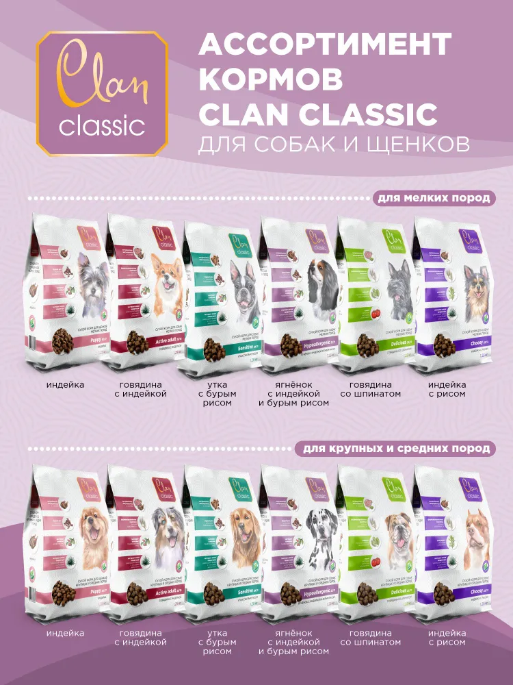 Корм для собак мелких сухой CLAN Classic Hypoallergenic 23/11 гипоаллергенный, ягненок и индейка с бурым рисом, 10кг